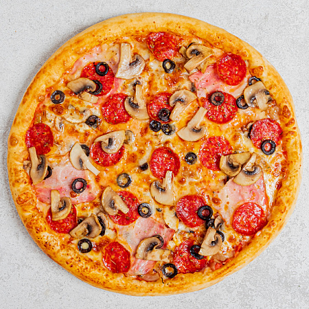 Пицца диаметром 30 см весит 600 гр, а 36 см - 800 гр