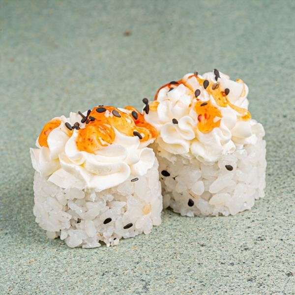 Краб-микс, такуан, сыр творожный, сладкий чили соус, кунжут, нори, рис (8 шт.)